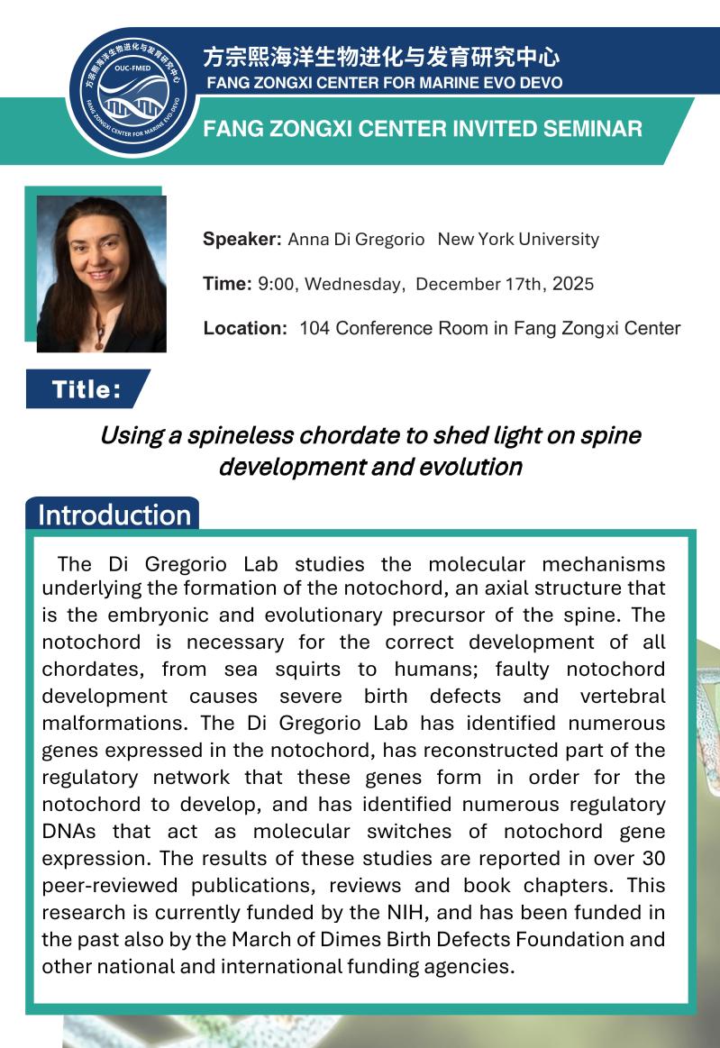 纽约大学 Anna Di Gregorio:Using a spineless chordate to shed light on spine development and evolution