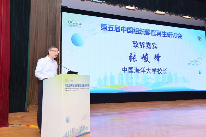 组织器官再生是生命科学和医学领域的重要研究方向,为推动国内组织器官再生研究的学术交流与合作,由中国细胞生物学学会主办、中国海洋大学和上海博生会展有限公司共同承办的第五届中国组织器官再生研讨会(又称“海会”)于2025年10月12-14日在山东青岛召开。中国科学院院士、清华大学孟安明教授,中国科学院院士、南昌大学校长陈晔光教授,中国科学院院士、中国海洋大学宋微波教授等参加会议。中国海洋大学校长张峻峰教授作为会议组委会主席出席开幕式并致辞。中国海洋大学赵呈天教授作为组委会秘书长,主持了会议开幕式。