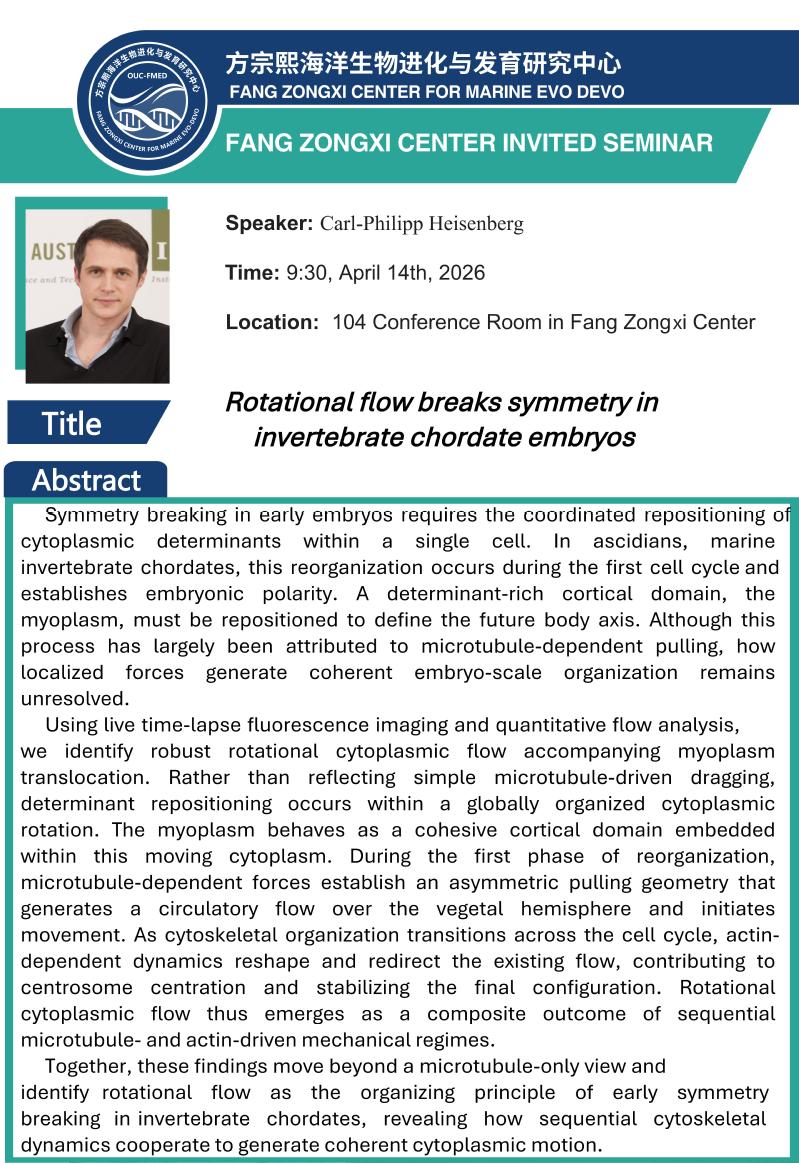 奥地利科学技术研究所Carl-Philipp Heisenberg:Rotational flow breaks symmetry in invertebrate chordate embryos
