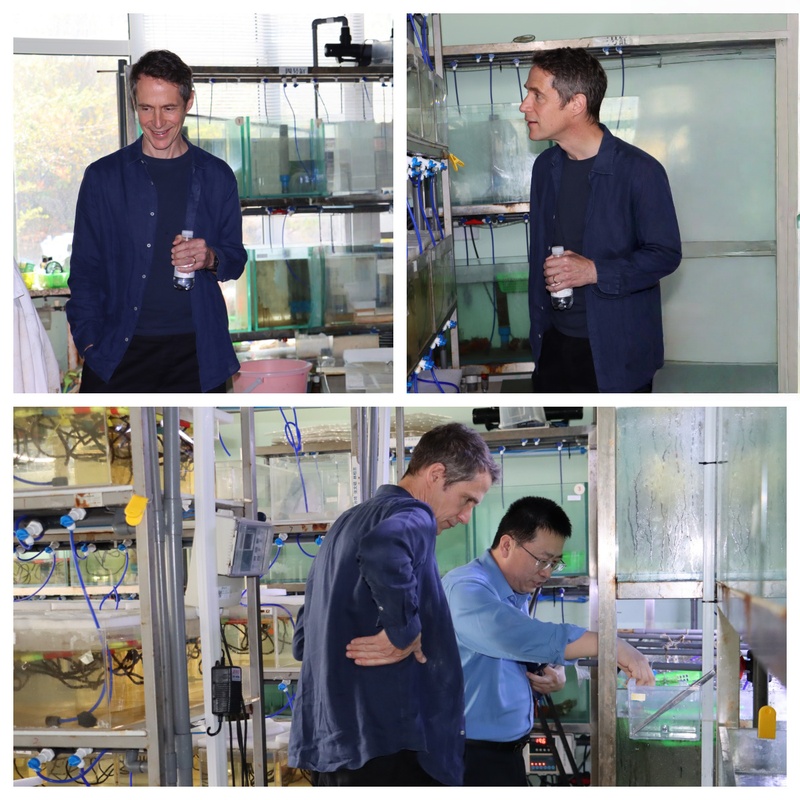 访问期间,Heisenberg 教授实地参观了方宗熙中心的养殖间、实验室及各类研究设施,详细了解了中心在海洋模式生物培养、发育生物学研究等方面的平台建设与技术积累。