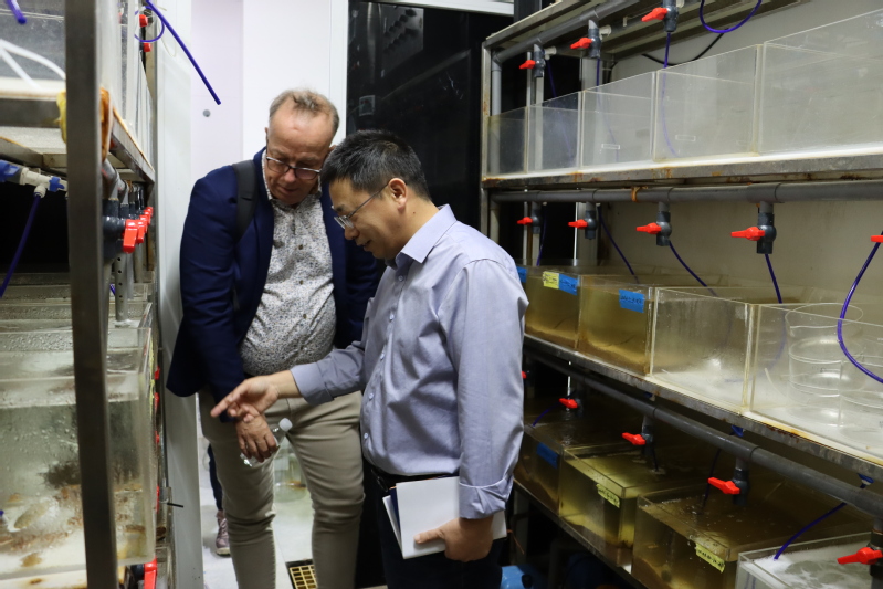 访问期间,Vincent Laudet教授实地考察参观了重点实验室的各个实验室以及养殖设备,分享交流了关于非模式生物的养殖经验。在随后举行的座谈会上,董波教授详细介绍了中心的整体建设情况、科研进展和学生培养体系等,双方讨论了学科未来发展方向以及潜力科研合作项目等。