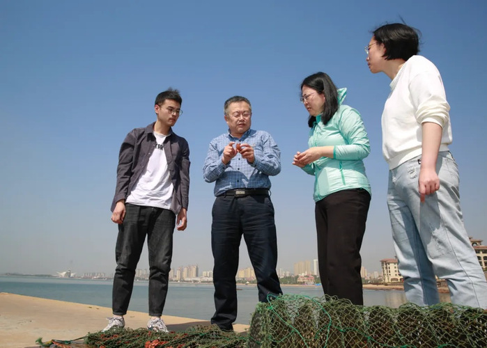 包振民院士(左二)与团队成员在交流水产品育种问题